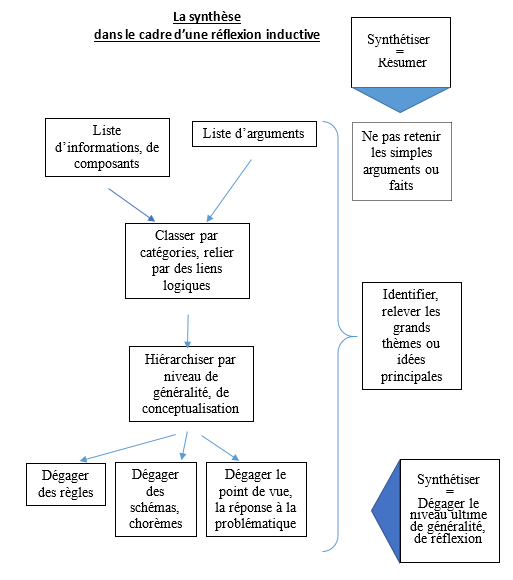 difficulté: passer de l’information à l’idée générale (concept abstrait) puis à la réflexion d’ensemble sur le sujet
