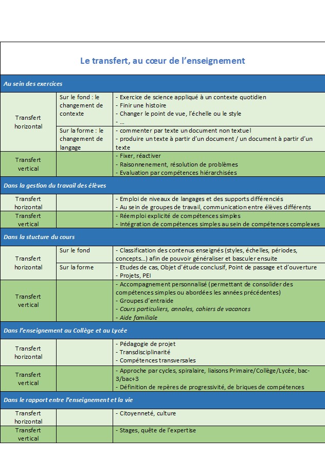 Le transfert, de par sa complexité, impose l’anticipation pour avoir une chance de porter des fruits. Et c’est bien pour cela qu’il est une compétence finale, de synthèse.