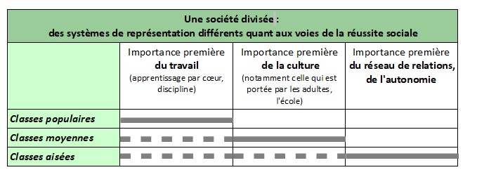 Pour ces populations les moins « conniventes », avec un cadrage de l’activité moins étroit (les attendus sous-jacents n’étant pas enseignés), il y aurait un fort décalage dans la conception des attendus, de l’apprentissage . Eux qui considèrent que leur mission est d’exécuter la tâche, sans en connaître le but réel. (voir les inégalités de perception de la réussite scolaire, vue en première partie de ce dossier).